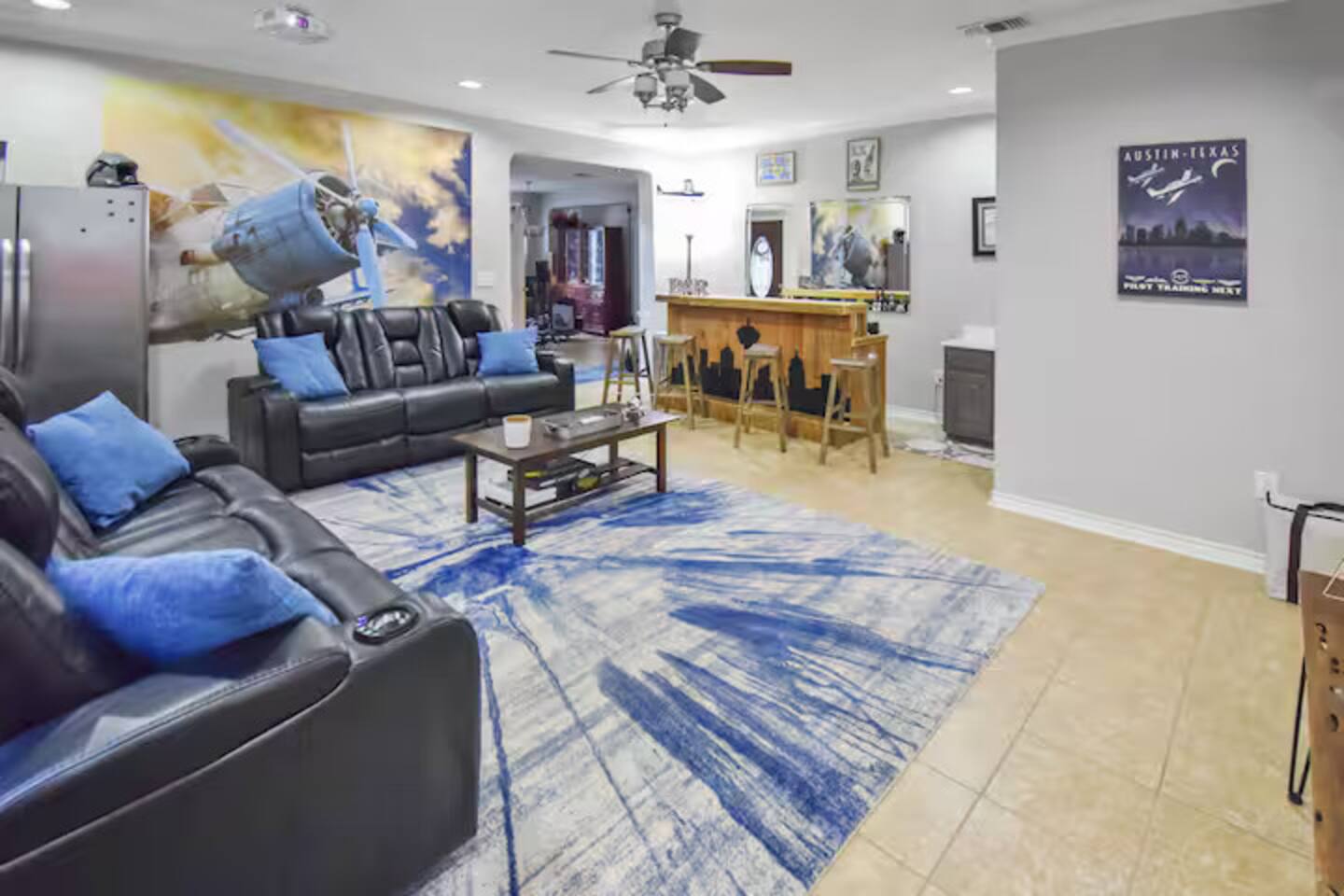 Same amazing property, same dedicated hosts — backed by our 4.9 guest rating and 100+ raving reviews for your peace of mind. Our previous listing can still be viewed here for reference: airbnb dot com/h/downtowndawson Built in 2007, you get the charm of the historic district without the historic heating and cooling 😉 With 5 bedrooms, 3 full bathrooms, and 2 half baths, this spacious home is designed to feel warm, comfortable, and inviting—your perfect home away from home. The master bedroom is conveniently located on the main floor and features a king bed plus a mobile crib for families traveling with little ones. Upstairs, you’ll find four additional bedrooms: three with queen beds and a bunk room that sleeps three, giving everyone plenty of room to unwind. For work-focused stays, the home includes several dedicated workstations equipped with external monitors, making it ideal for corporate retreats, team off-sites, and remote work trips. There’s plenty of space to collaborate, focus, and recharge. When it’s time to relax and have fun, you’ll be spoiled for choice. Enjoy movie nights in the private theater, challenge friends to foosball, explore a variety of board games, hit the retro arcade, or squeeze in a workout in the in-home gym. Step outside and enjoy the private backyard—perfect for lounging, grilling, and gathering around the outdoor firepit. It's a welcoming space to unwind, connect, and enjoy San Antonio’s beautiful weather. Whether you’re planning a work retreat, business trip, family getaway, or friends’ vacation, this home gives you all the comfort, space, amenities, and entertainment you need for an easy, enjoyable, and truly memorable stay.